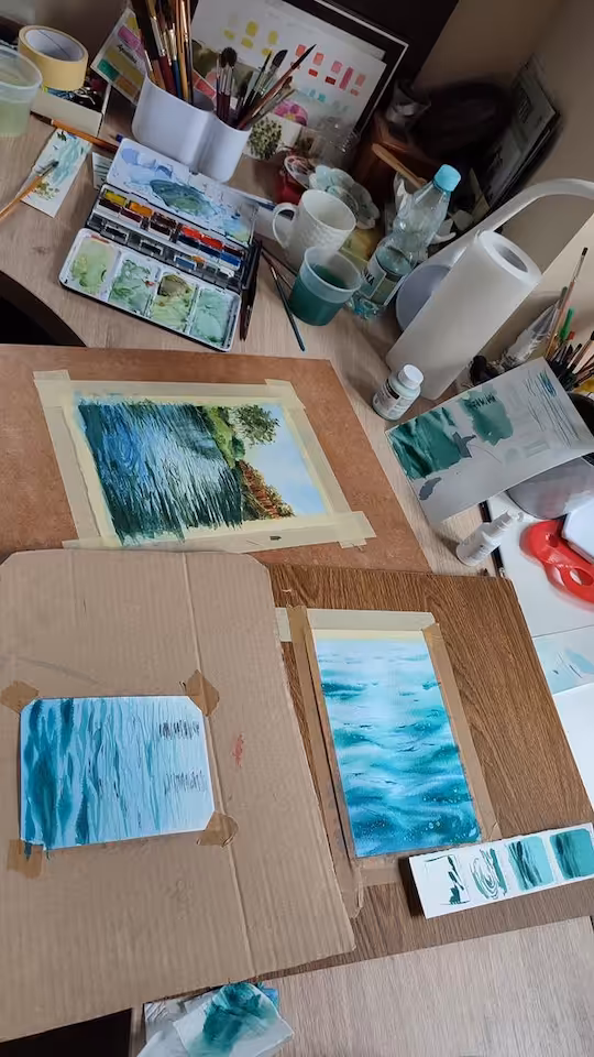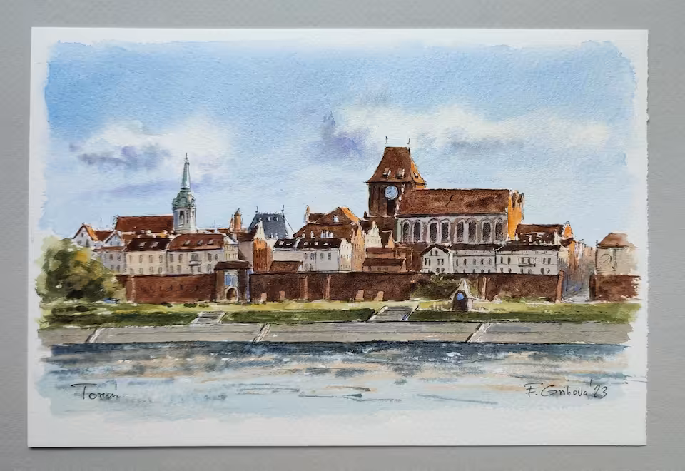 Warsztaty akwarelowe, indywidualne - spotkanie 1:1, w Toruniu, w miejscu zamieszkania zamawiającego lub w okolicy Torunia (max czas dojazdu pociągiem 50min.) W tej wersji ceny zapewniam wszelkie materiały - papier, farby, pędzle - na czas trwania warsztatów. Czas trwania 5-6h z przerwą. Tłumaczę o co chodzi w akwareli, jak używać, robimy próbki i namalujemy 1-2 nieduże obrazy (19x28cm) z Twojego zdjęcia lub tematu który zaproponujesz. Zapewniam przyjazną atmosferę:) Wcześniej proponujesz zdjęcie lub temat do malowania, oceniam czy nada się i opracowuję strategię malowania. Nie musisz mieć wcześniejszej styczności z akwarelą - wszystko pokażę, odpowiem na pytania, pożartujemy, wypróbujemy - to ma być zabawa, a nie praca :)